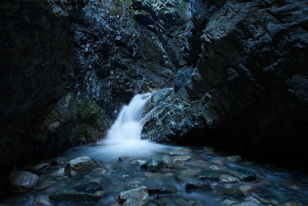 The short hike leads into a narrow canyon where water cascades down the rock walls. Because the waterfall is hidden within the canyon, the setting feels intimate and dramatic.