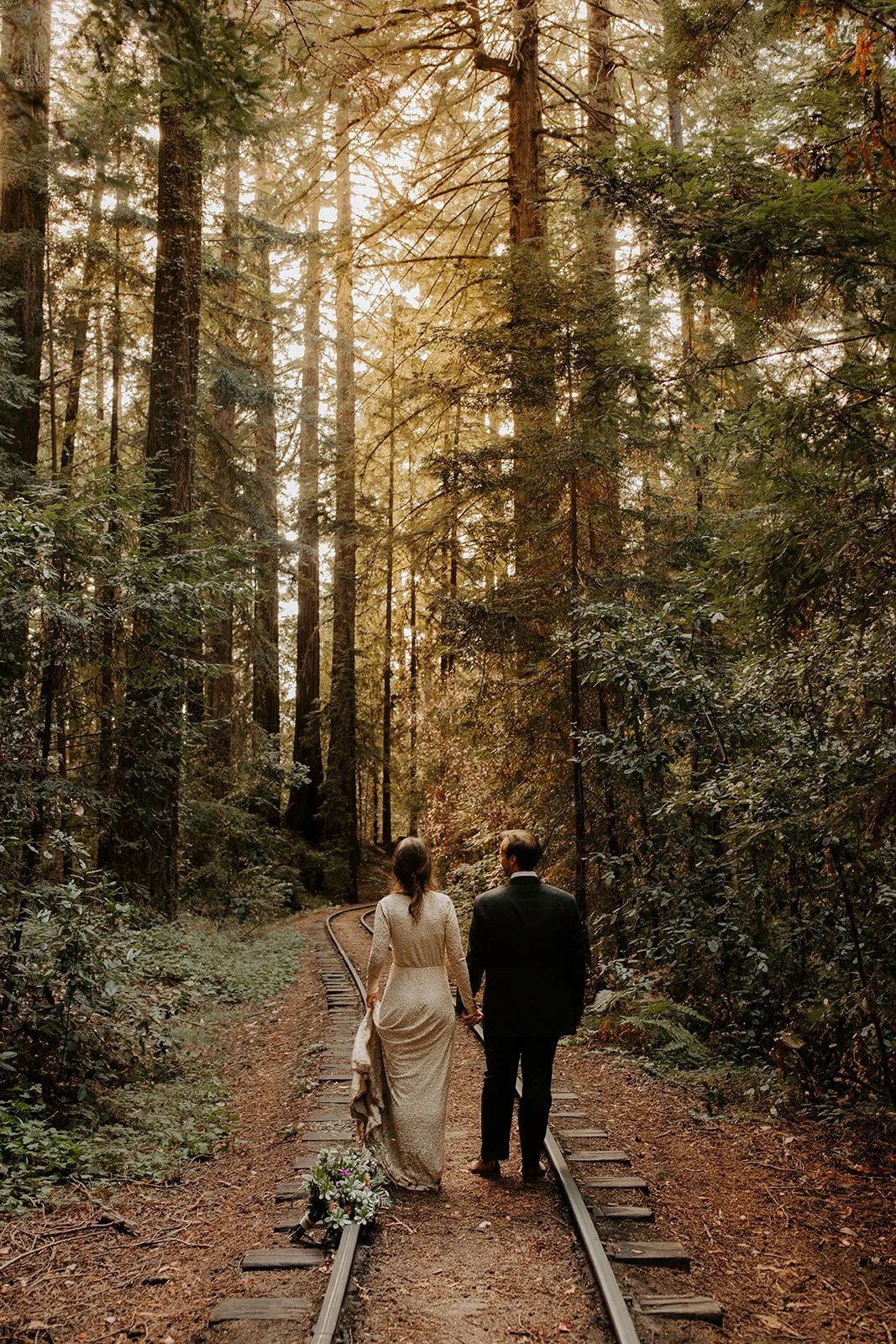 Redwood elopements are nature-focused with strong themes of adventure, mysteriousness, timelessness, and feelings of awe when standing amongst ancient giants. They are often rustic and whimsical occasions that allow couples and guests to feel like they are in a fairy-tale forest with magic existing just beyond the lush foliage.