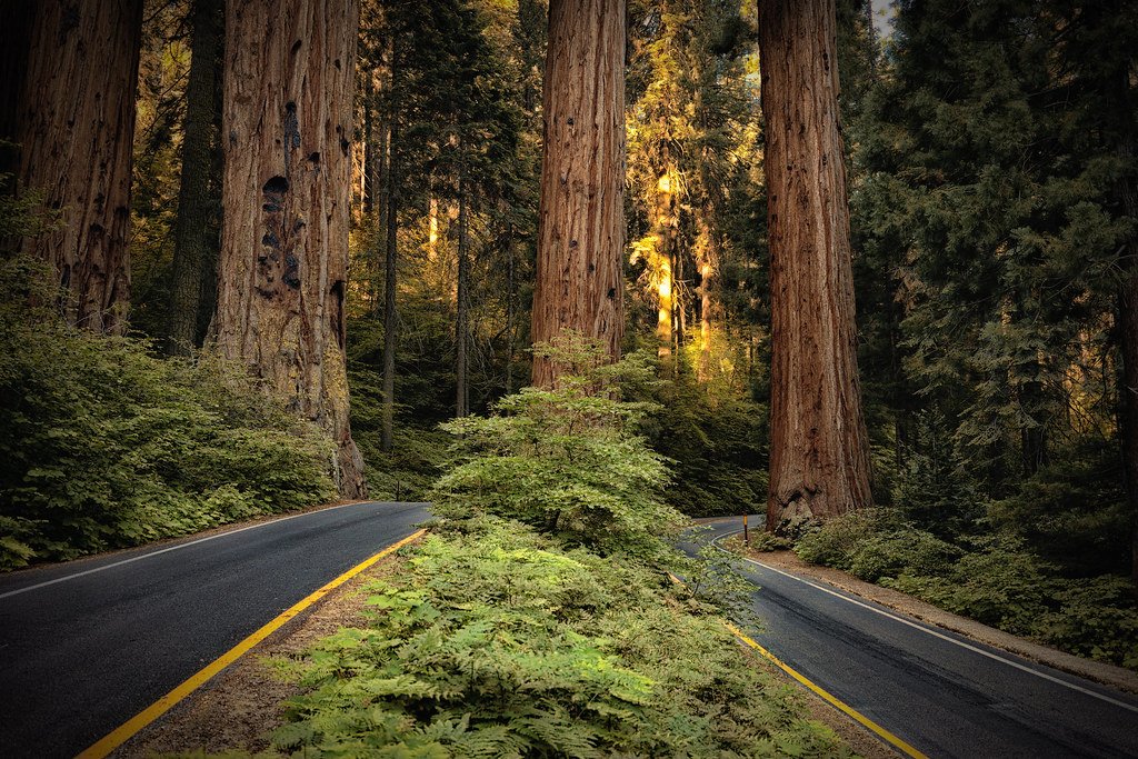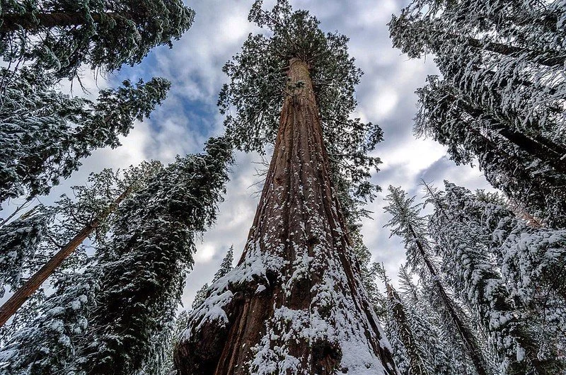 Giant sequoias grow in the Sierra Nevada Mountains, primarily in Sequoia and Kings Canyon National Parks. They're the largest trees by volume on Earth, with the iconic broad trunks you've likely seen photos of. The atmosphere is different: drier, more open, higher elevation, with a more structured national park experience. Permitting is stricter and crowds are heavier in peak season.