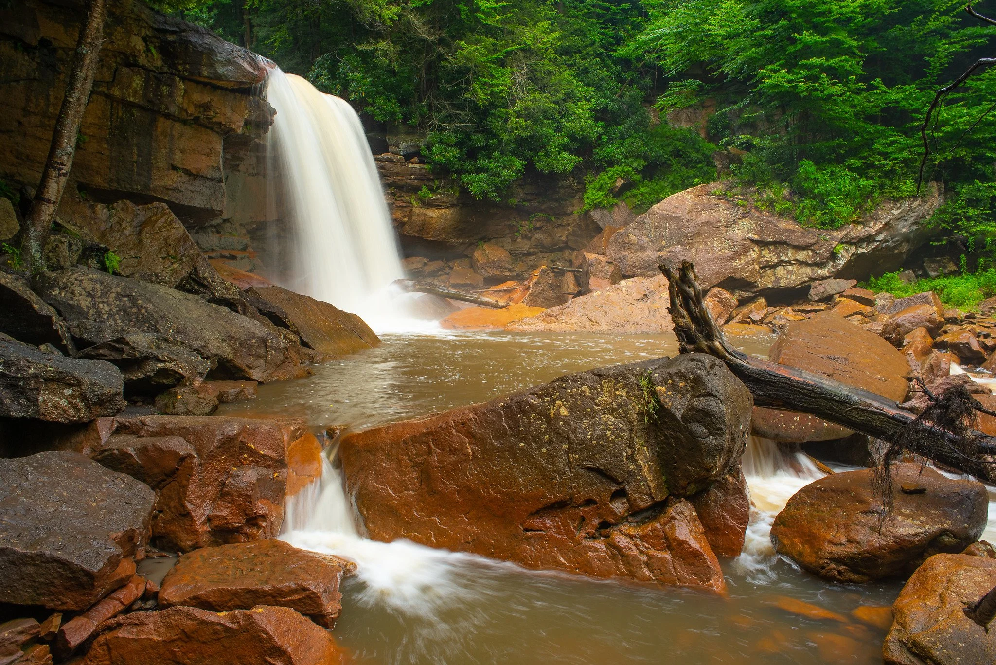 Located inside Blackwater Falls State Park, this is one of the most iconic waterfalls in West Virginia. The 57-foot cascade drops into a dramatic gorge surrounded by dense forest and amber-colored water created by tannins from hemlock and spruce trees.