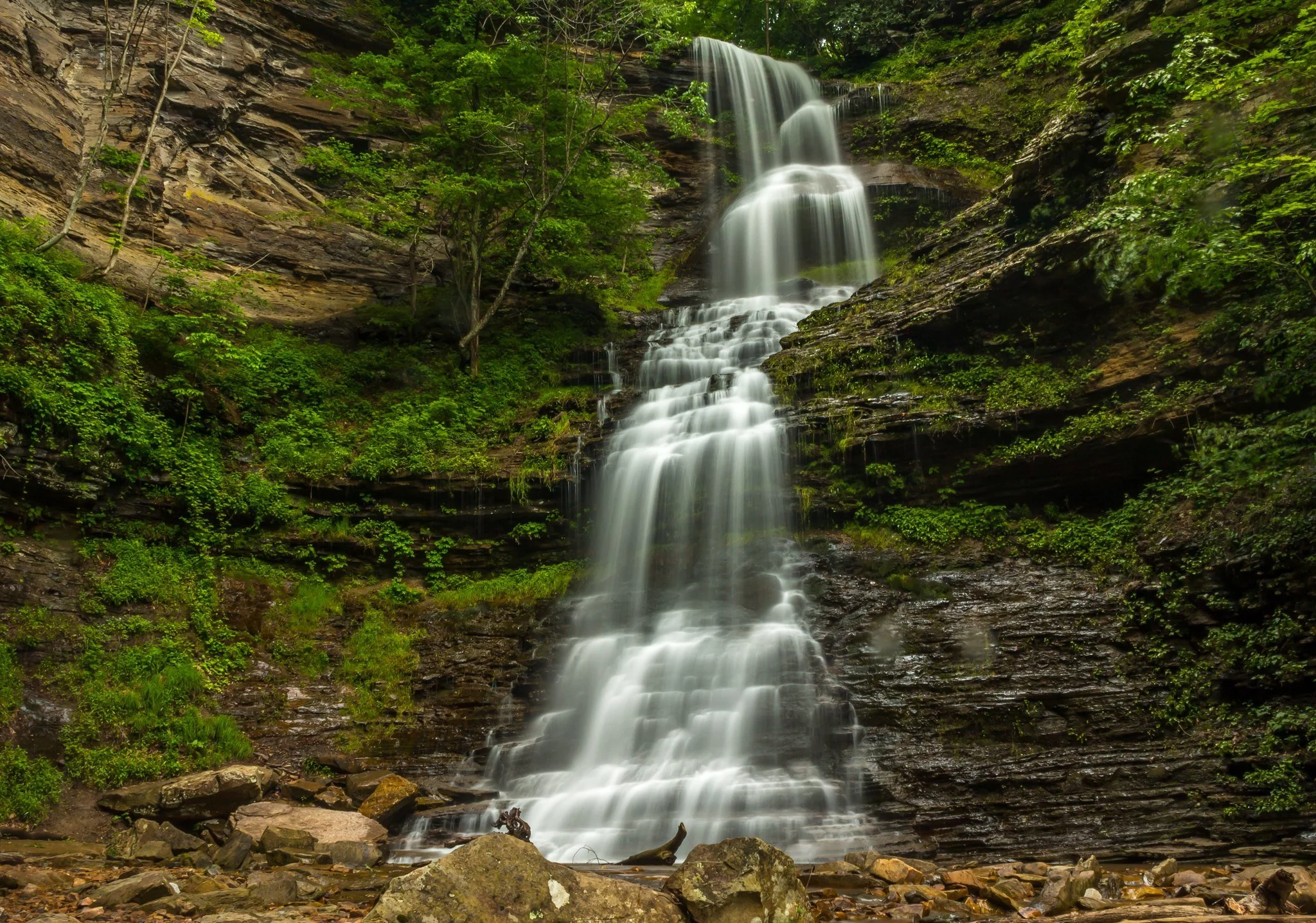 Spring typically offers the strongest waterfall flow thanks to seasonal rain and snowmelt. Fall is another popular time because of the vibrant Appalachian foliage. Summer provides warm weather but can be busier at popular locations, while winter offers quieter landscapes with occasional frozen waterfalls.